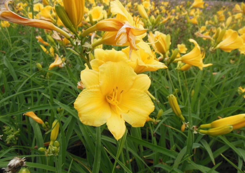 金娃娃萱草圖片草 時間:2025-12-22 22:10:01 金娃娃萱草是屬于一種園藝栽培的品種,作為綠化美觀使用非常的適合,主要就是每年的花期比較長,可以分為盛花期以及續花期,每一朵花開花都可達到7天左右,生長時候的高度在30厘米左右,下面是小編為大家找的金娃娃萱草圖片草大全