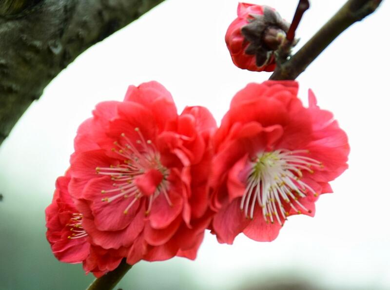 紅梅花圖片 時(shí)間:2025-12-22 22:10:01 紅梅花是梅花當(dāng)中的一種類型,梅花是分為多種類型的,其作用非常高,可以當(dāng)做園林綠化使用,紅梅花是屬于一種常綠喬木,根據(jù)不同的品種有著不同的成長高度,平均高度是在4米到10米之間,每年的果期是在5月份6月份下面是小編為大家找的紅梅花圖片大全