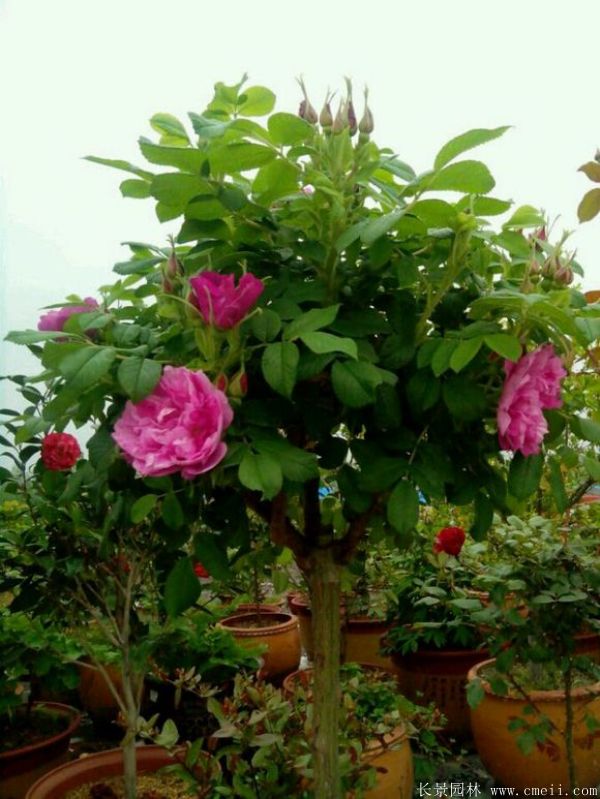 玫瑰,棵型高0.7~2米高左右,樹葉形狀根據(jù)種類各不相同有差別,有些較為細(xì)長,有些接近橢圓,玫瑰花朵顏色是豐富,如桃紅,紅色,淡黃色,粉白色等,花期比較長,花量巨大,每年花開時間從6月上旬到9月初,花種9~10月熟透,有較高的出芽水平。