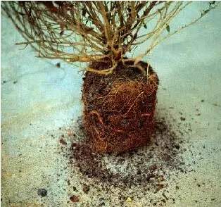 盆栽植物的土球里面往往隱藏很多死根爛根和纏繞根,植物在移栽前往往需要正確的修剪根系