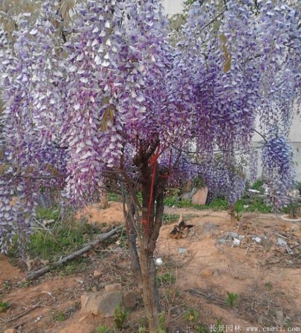目前我們公司有批紫藤苗現貨等待出售,數量在100萬棵左右,全部都是精品。我們種植基地的紫藤苗質優價低,對土壤的選擇性低,成活率高。紫藤開花時枝條綴滿紫色的花朵垂落下來,在藍天白云的映襯下顯得格外美麗,它長長的枝莖還可以纏繞在支架上,制成花廊,用作裝飾。